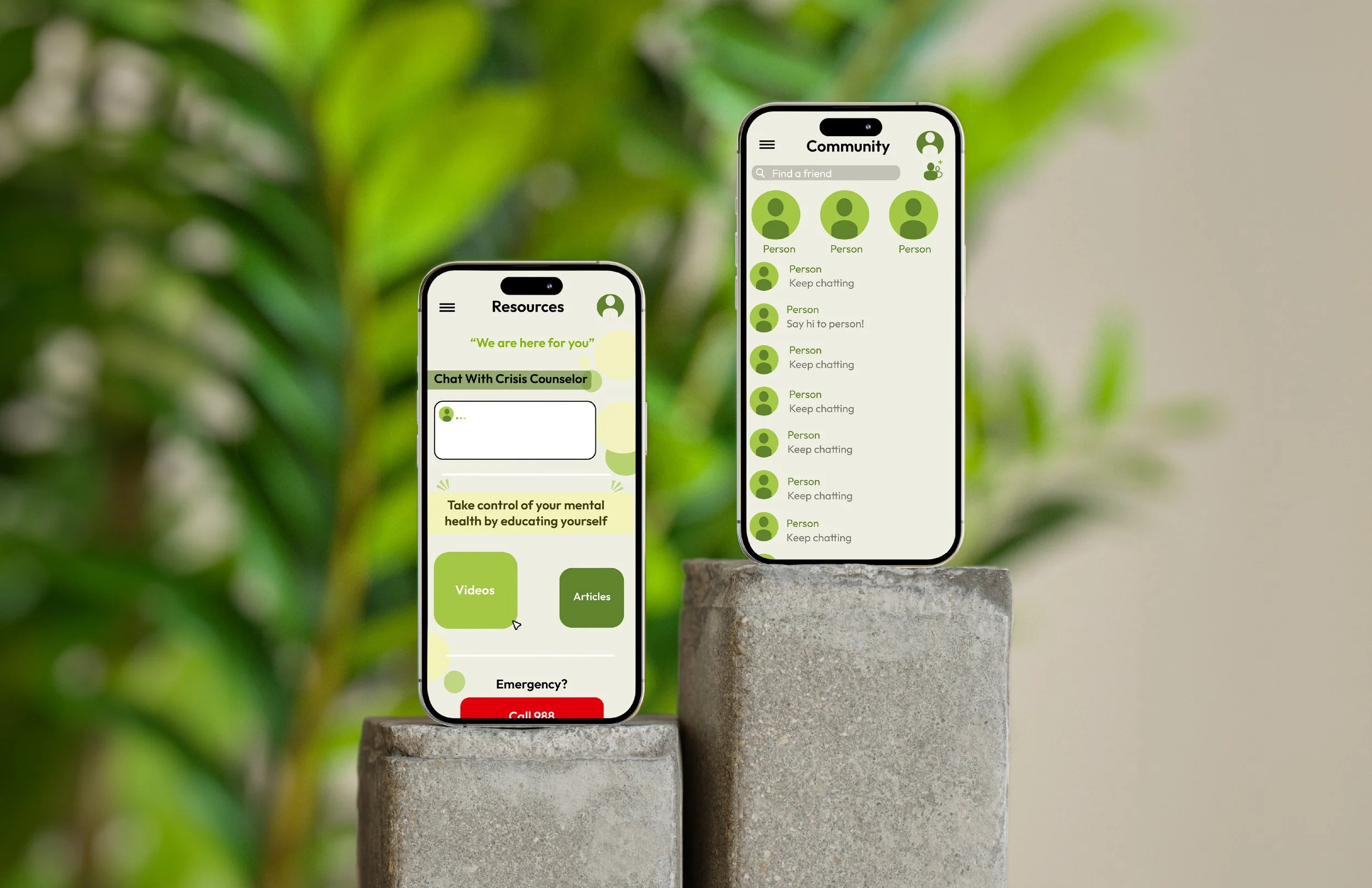 A mobile app designed to help college students access counseling services and build supportive connections within their school community.